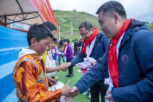 7月11日,西藏昌都市丁青县实验小学迎来了一批“特殊的客人”——由“同心·共铸中国心”组织的来自北京的50多位医护人员和志愿者。双方共同开展了医疗专家组专题讲座、物资捐赠、公益拍卖、聘请校外心理辅导员等活动。