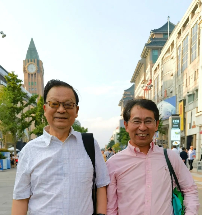 谭先杰(右)和恩师郎景和院士(左)。受访者供图